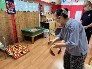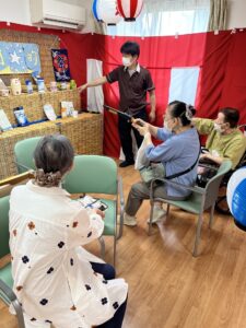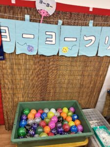 射的にヨーヨー釣り、輪投げにチョコバナナコーナーまで、屋台風のブースがずらりと並び、入居者の皆さまも童心にかえって楽しんでいらっしゃいました♪