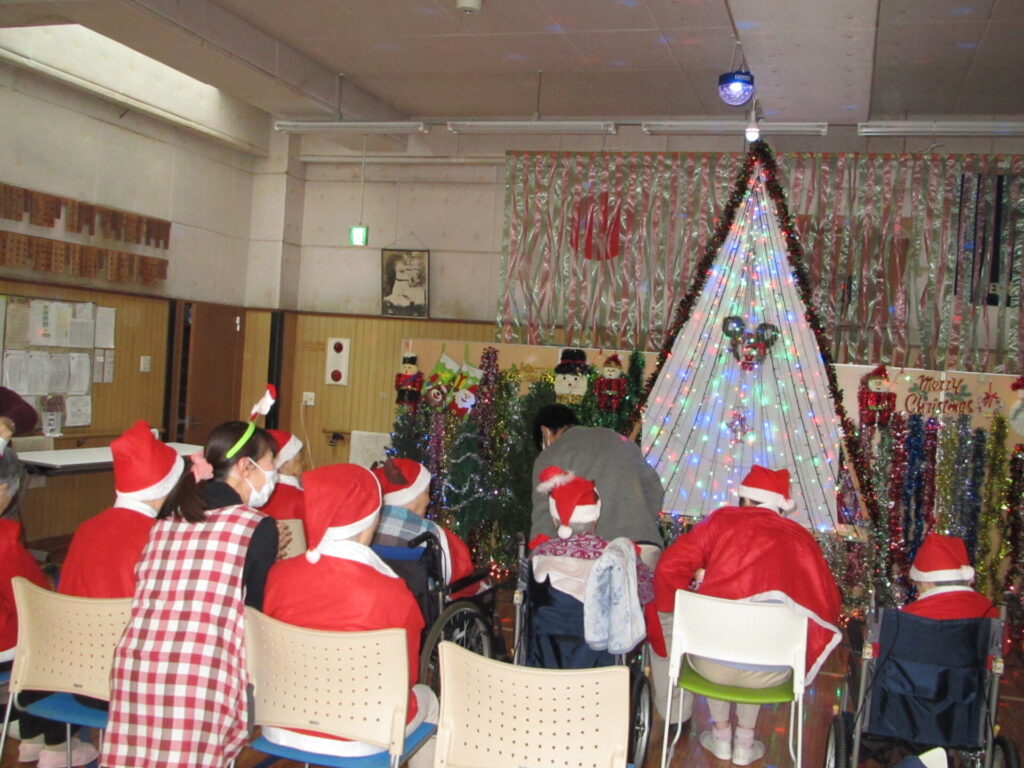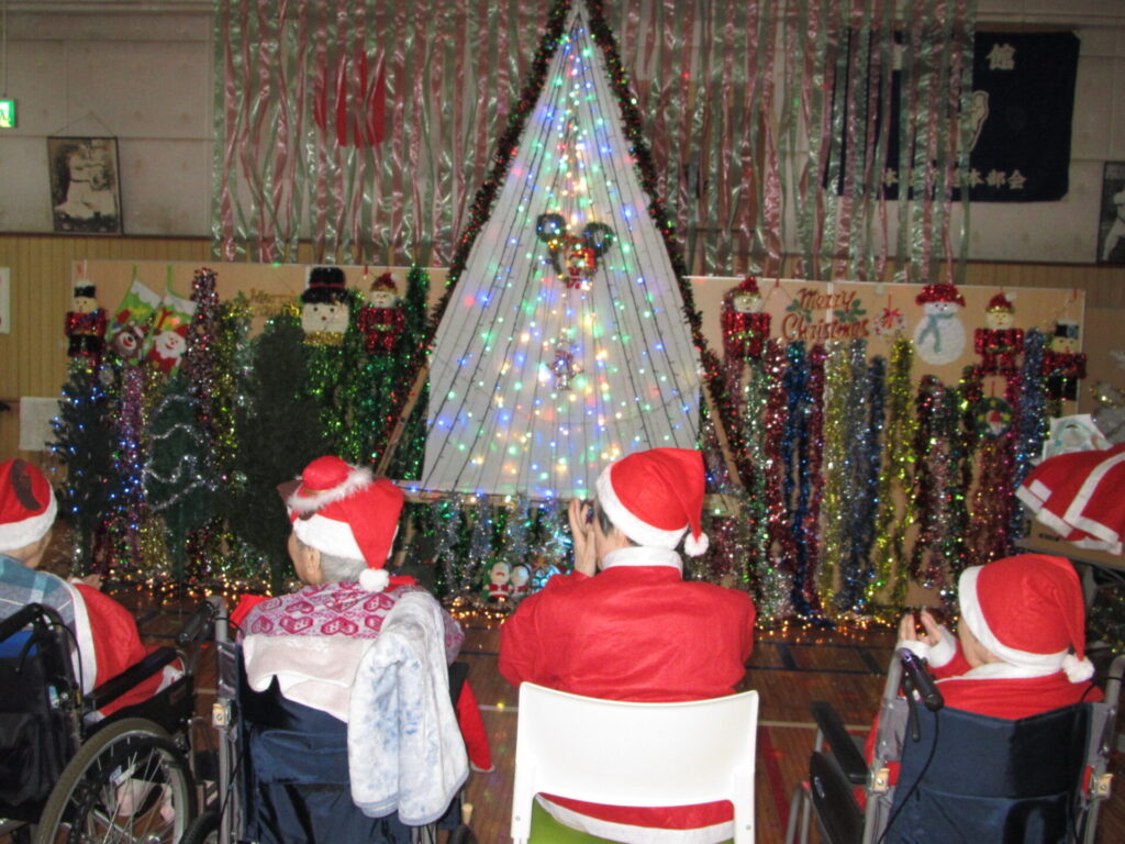 師走と言う事で忙しい中、皆様は如何お過ごしでしょうか?ひいらぎの里のご入居者様は忘年会はしませんがクリスマス会をささやかに開催しました。色とりどりのイルミネーションを見て「凄く綺麗だね」と自分のお子様やお孫様と過ごされて思い出を語られておりました。
