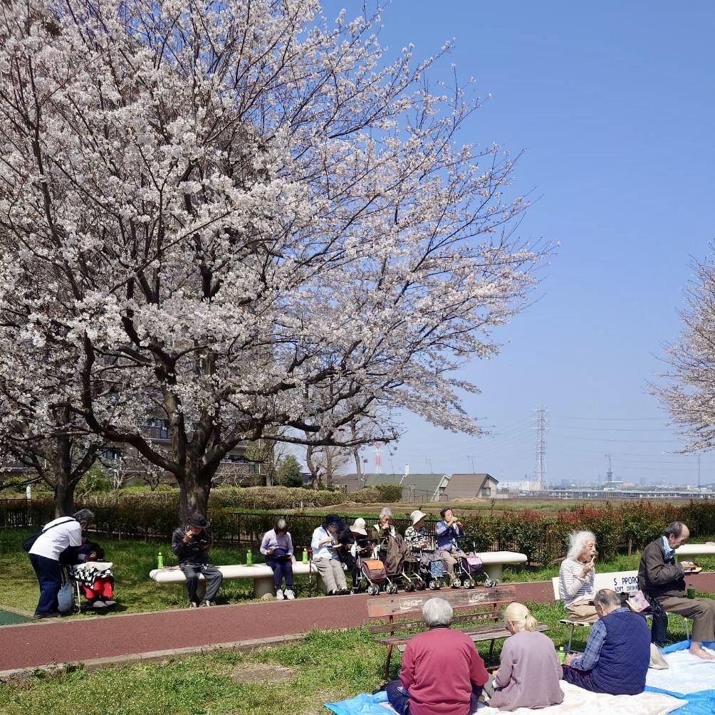 春の暖かさを感じる中、入居者の皆さまと一緒にお花見を行いました🌸