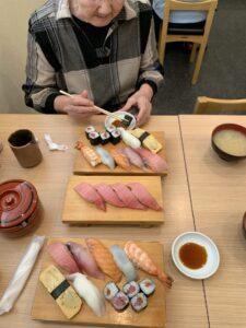 認知症対応型グループホーム ひいらぎの里5月は、お誕生日を迎えた方が2名、そして新規ご入居様が1名いらっしゃり、お祝いを兼ねて駅前の玄徳寿司やみんな大好き回転寿司の、はま寿司に行ってきました!!(ノ◕ヮ◕)ノ*:・゚✧玄徳寿司では、ご利用者様「中とろが大好きだから、たくさん食...