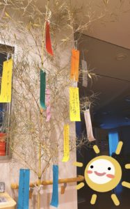 サービス付き高齢者向け住宅 ひいらぎの里7月7日は七夕でしたね☆ 入居者の皆さんやご家族の皆さん、職員、それぞれのお願い事がたくさんの笹を、受付の前に飾りました☆ 皆さんのお願い事が星に届くといいですね(^^)